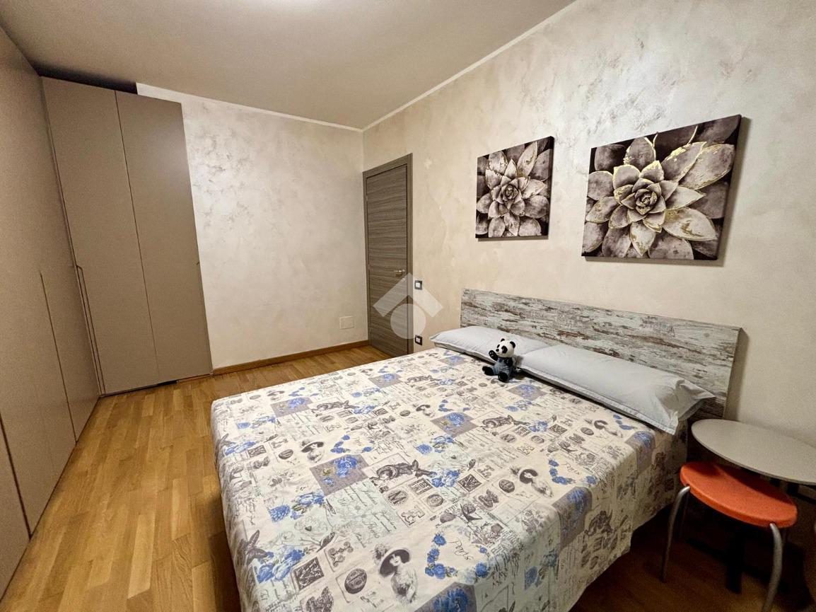 La camera da letto, accogliente e ben illuminata, è dotata di un secondo balcone. Il bagno, moderno e ben rifinito, completa la disposizione interna.