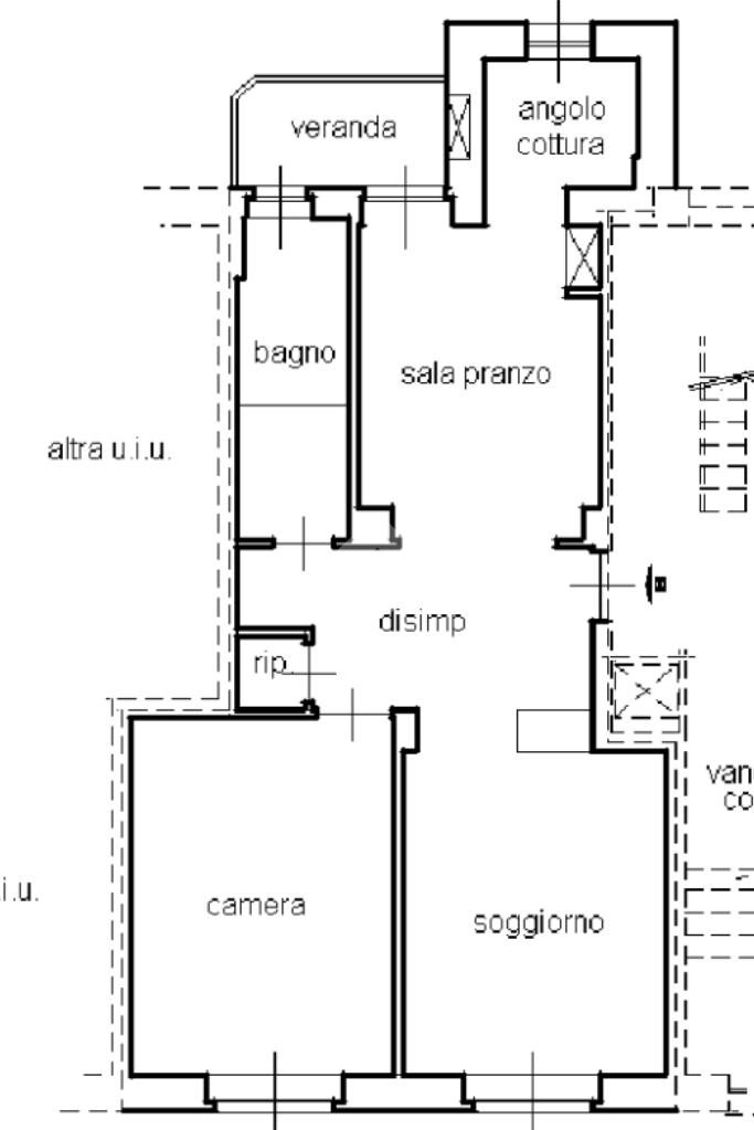 Attualmente disposto come un grande bilocale, con possibiltà di creare nuovamente due camere da letto e una bella zona giorno con cucinino.